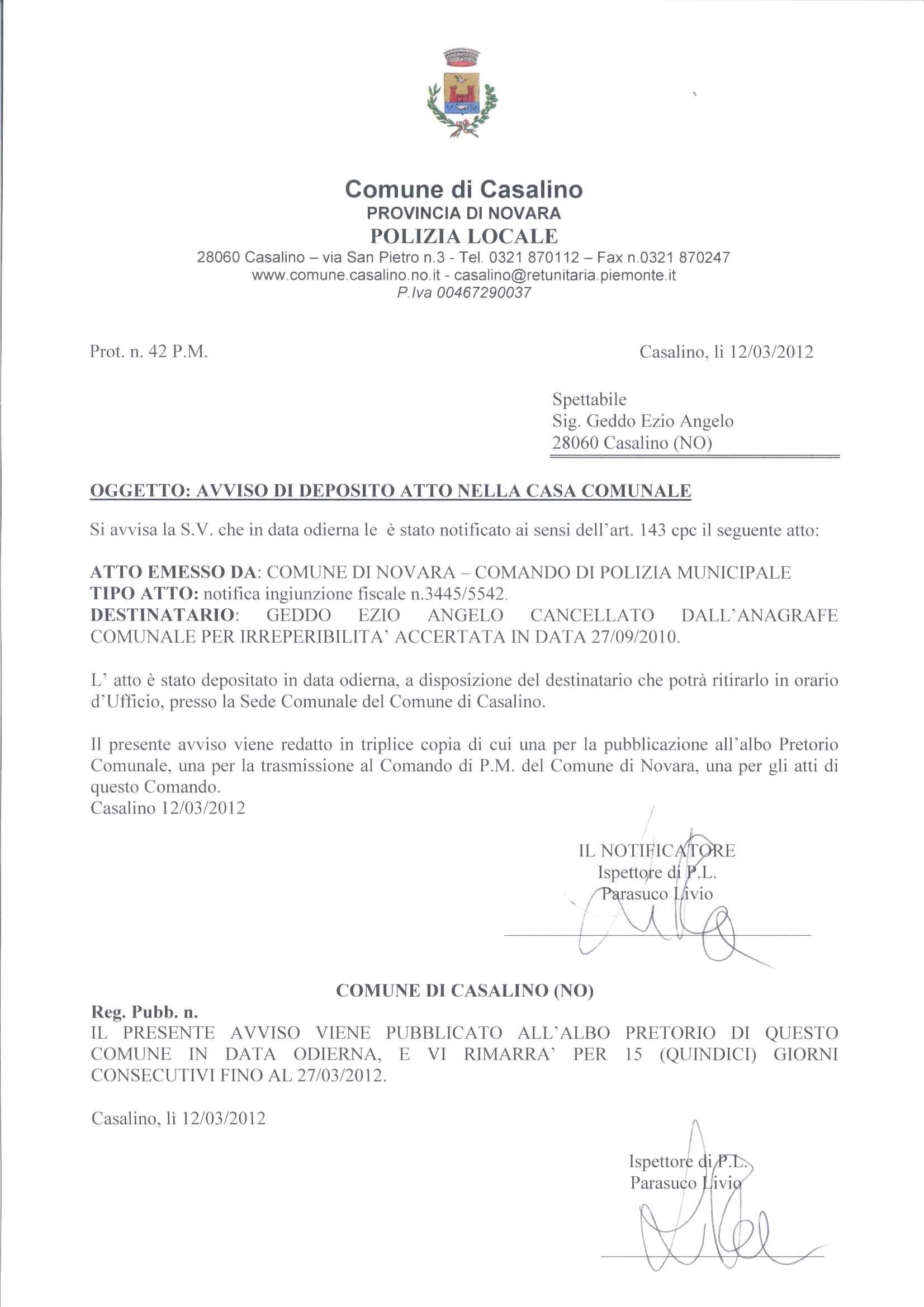AVVISO DEPOSITO INGIUNZIONE G.E.