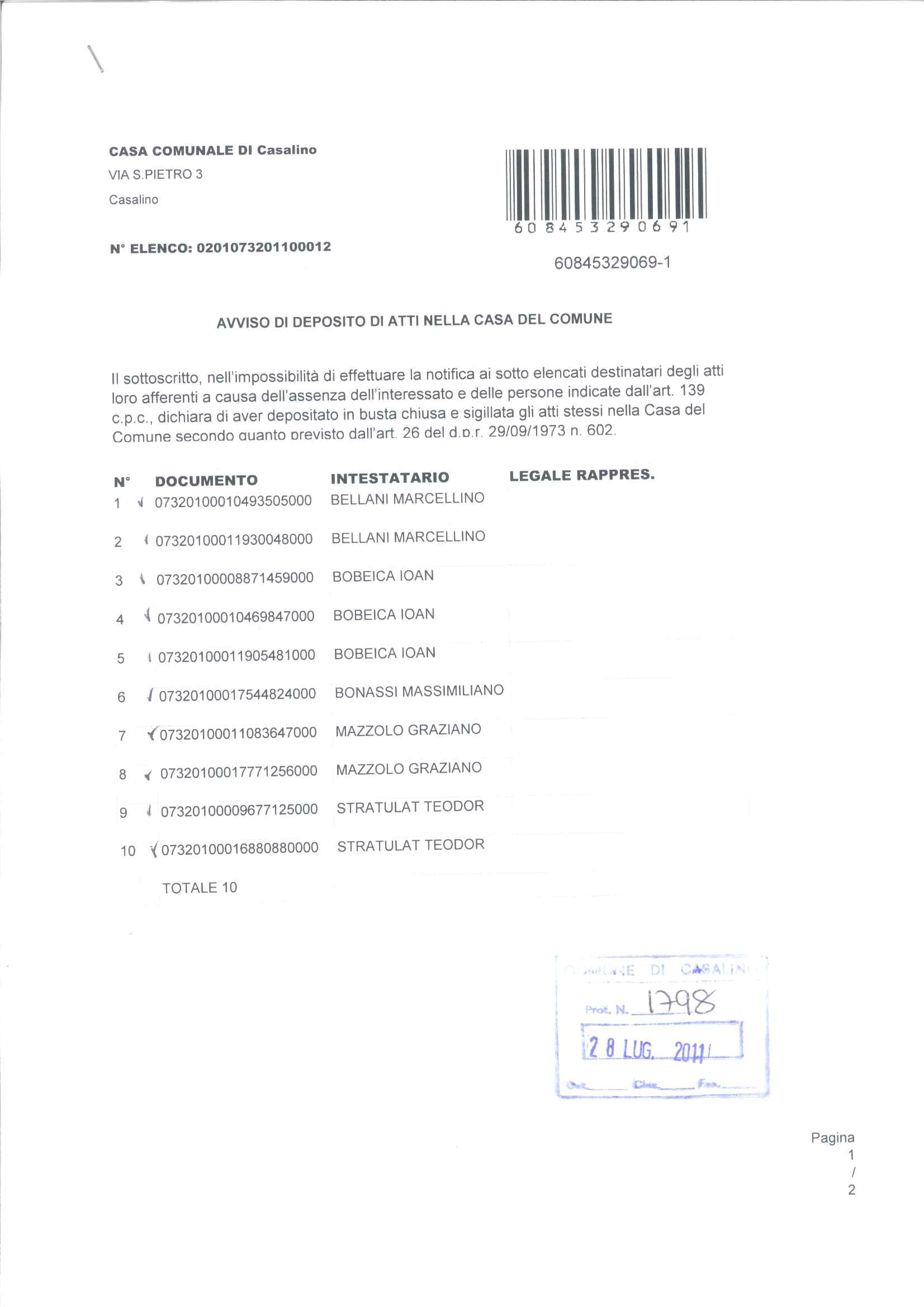 Poste Italiane S.p.a - Affidataria per il servizio di notifica atti per conto di Equitalia