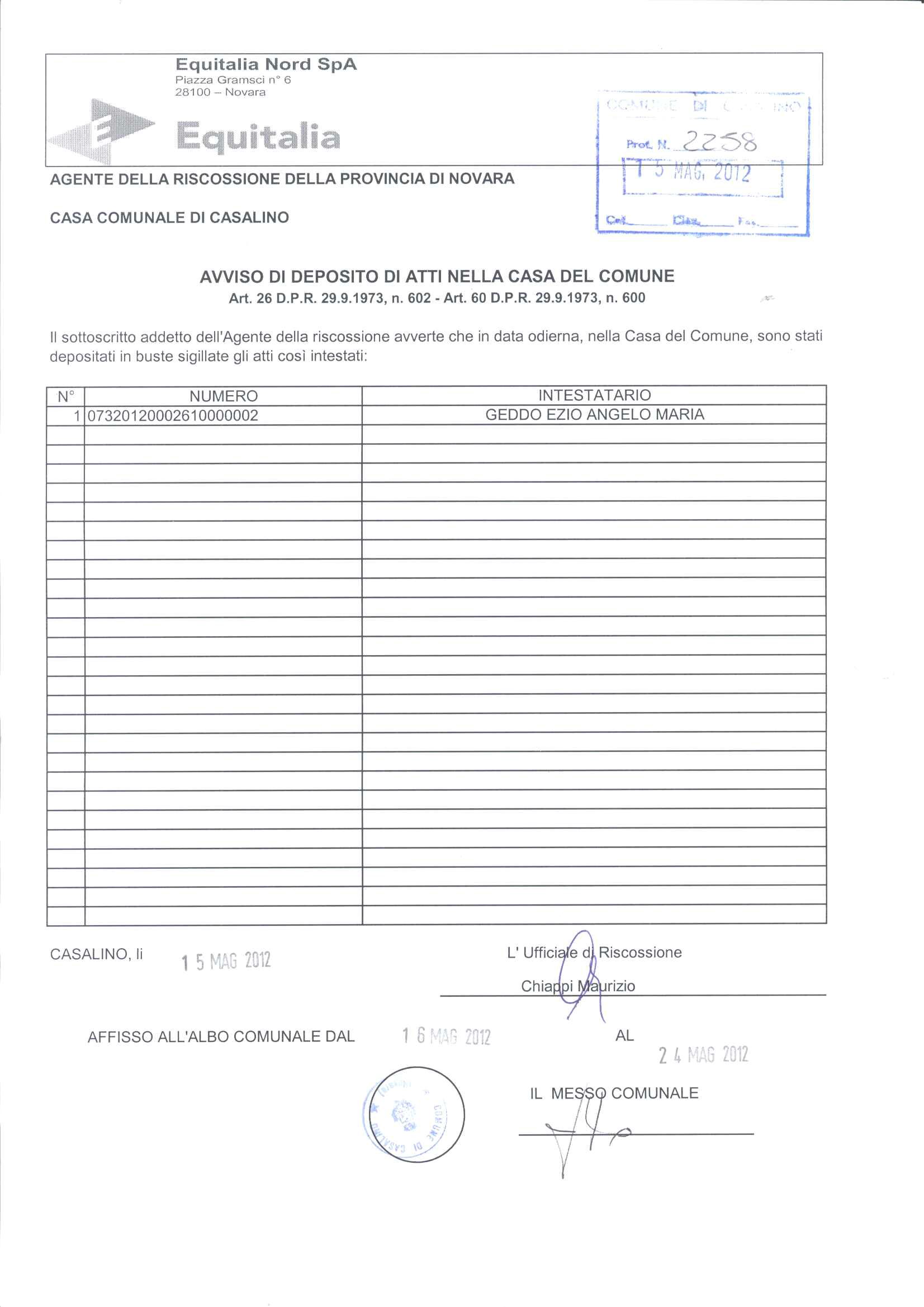 DEPOSITO ATTI CASA COMUNALE ART. 60