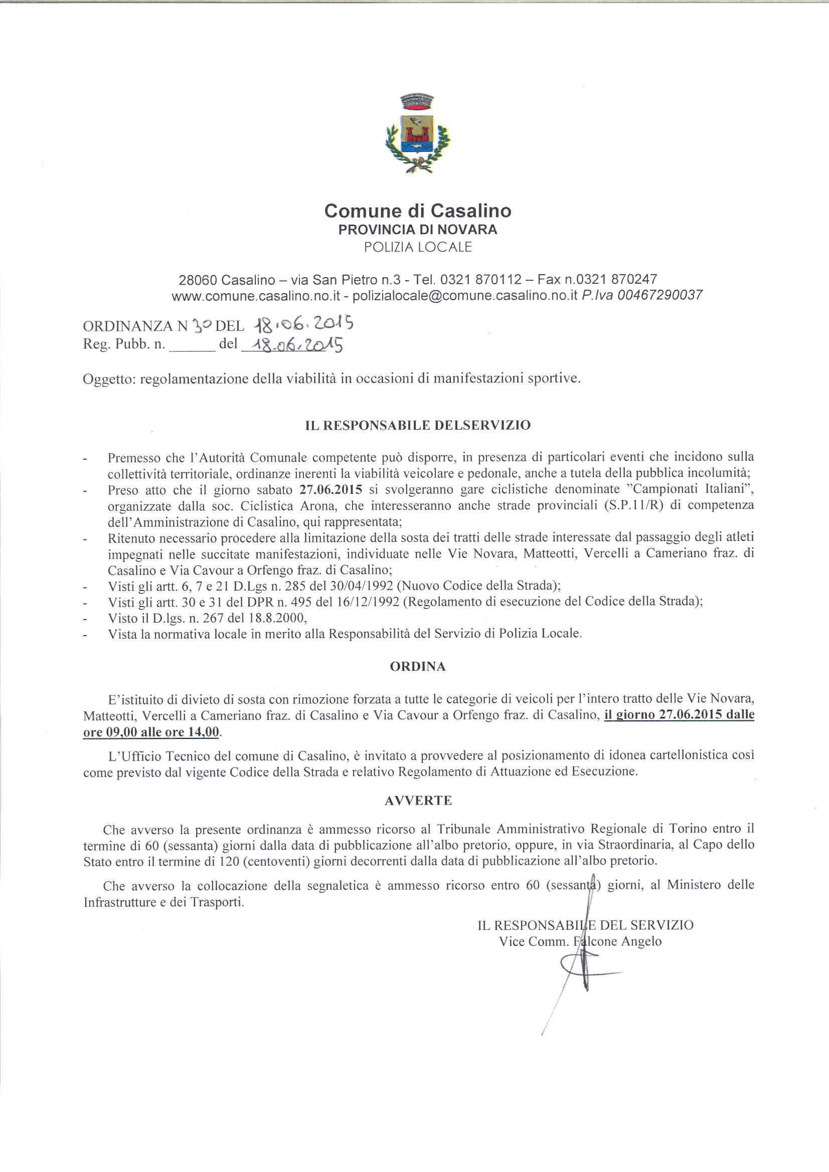 Documento albo pretorio > Atto amministrativo > Ordinanza > Ordinanza del Sindaco