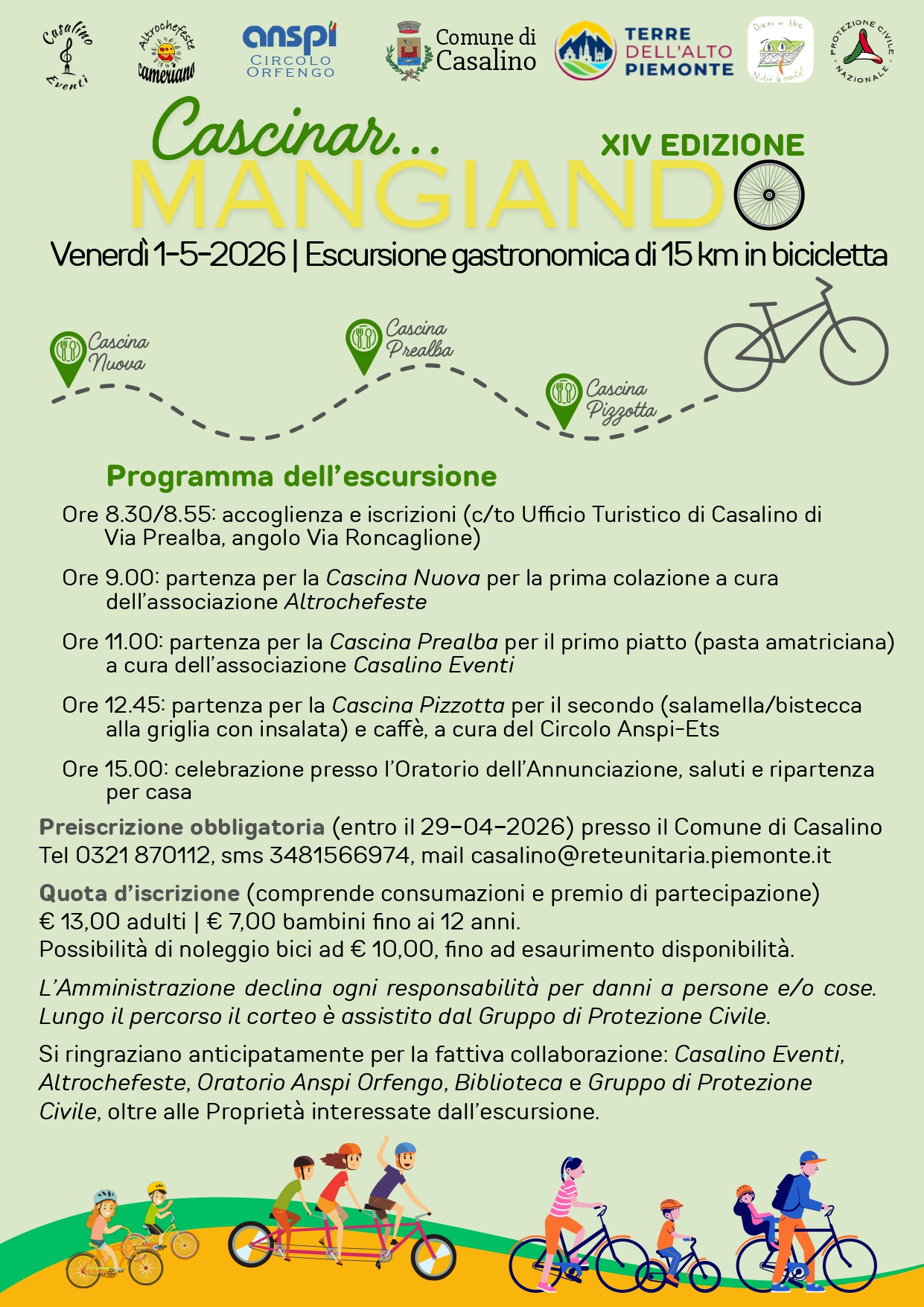 Preiscrizione obbligatoria entro il 29/04/2026 presso il Comune di Casalino (vedi contatti).