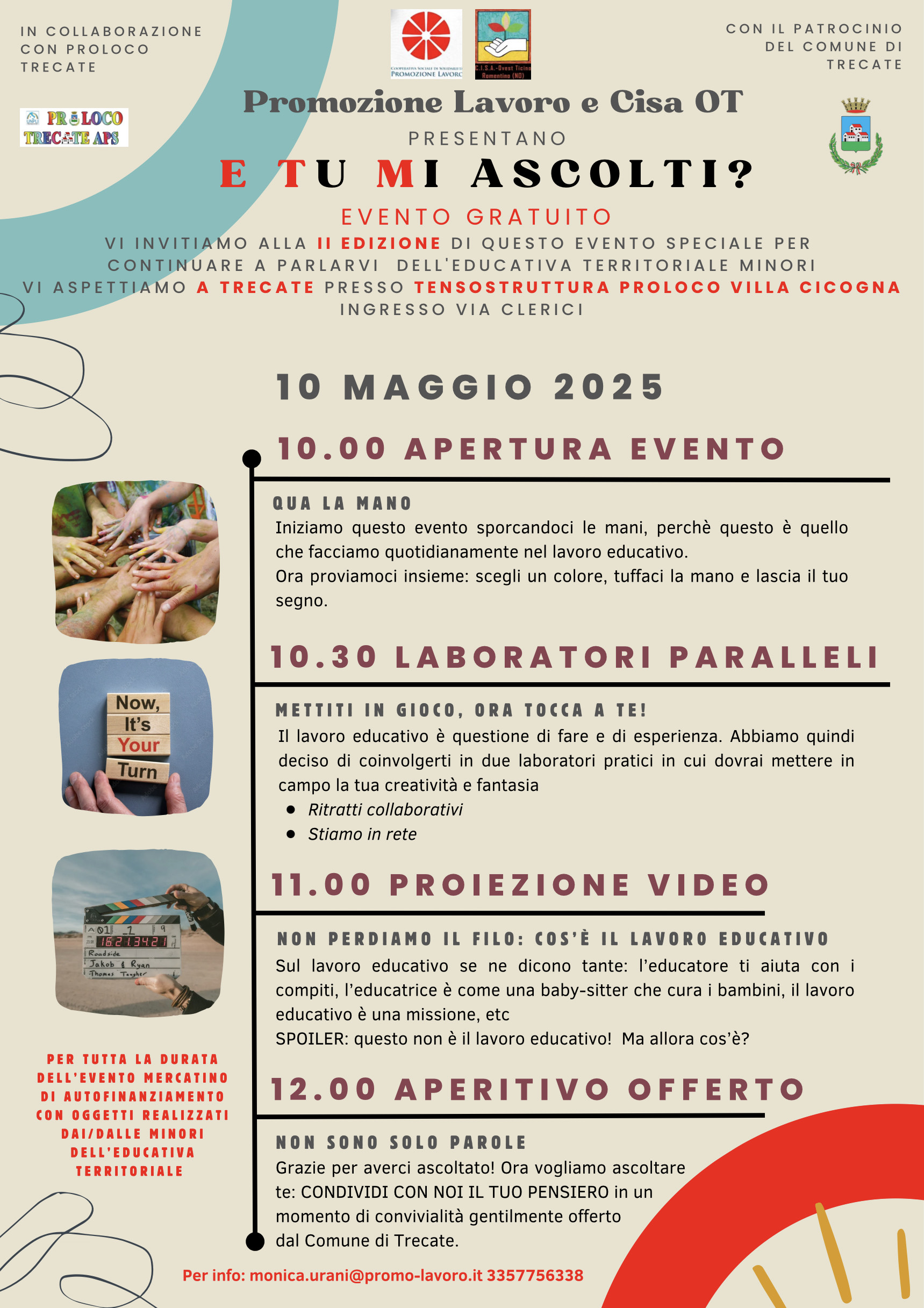 Seconda edizione di E tu mi ascolti? organizzato da Promozione Lavoro e Cisa Ovest ticino, in collaborazione con Proloco Trecate e con il patrocinio del Comune di Trecate.