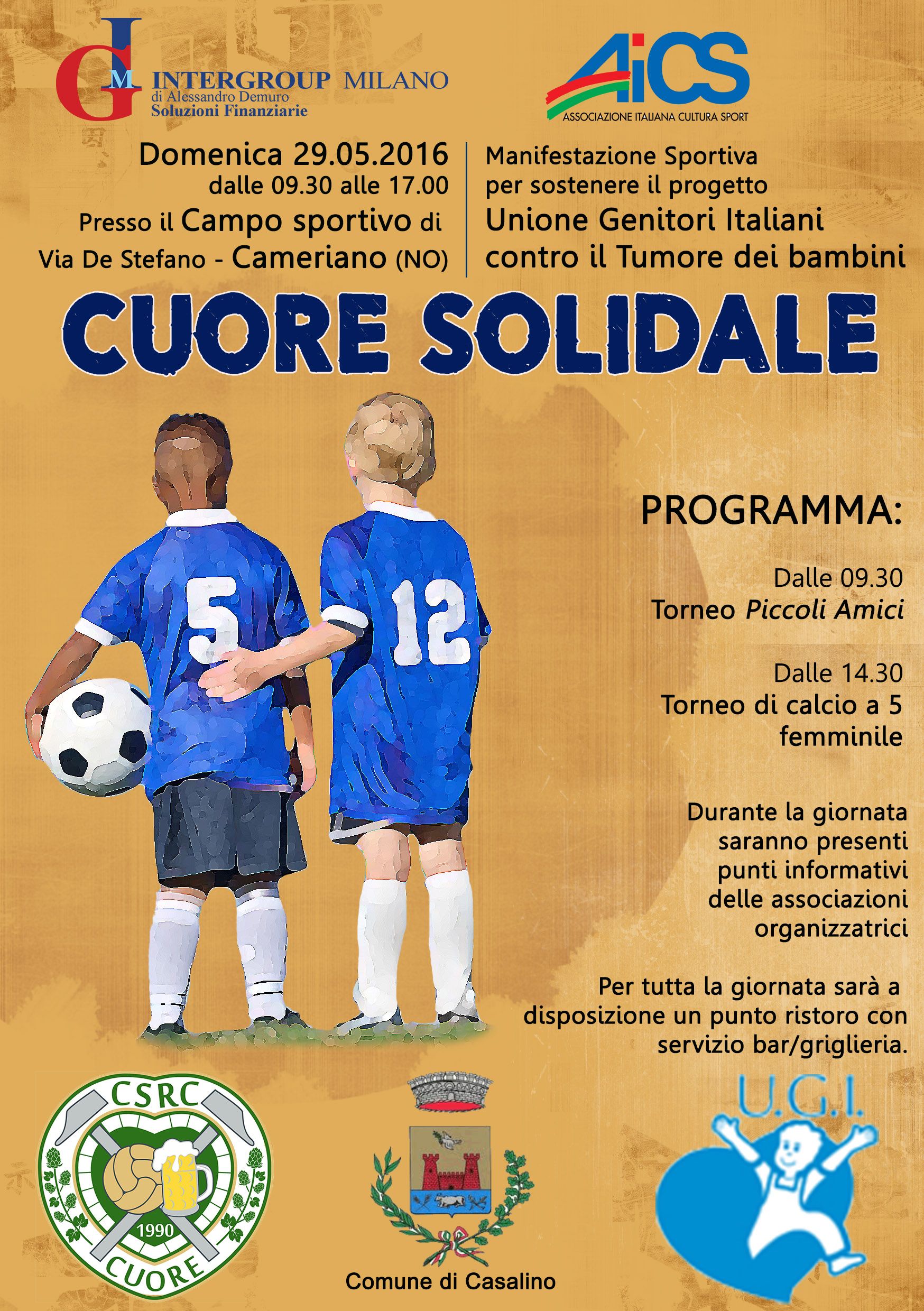 DOMENICA 29/05/2016 DALLE ORE 9,00 ALLE ORE 17,00 PRESSO IL CAMPO SPORTIVO DI VIA DE STEFANO - CAMERIANO - MANIFESTAZIONE SPORTIVA "CUORE SOLIDALE".
