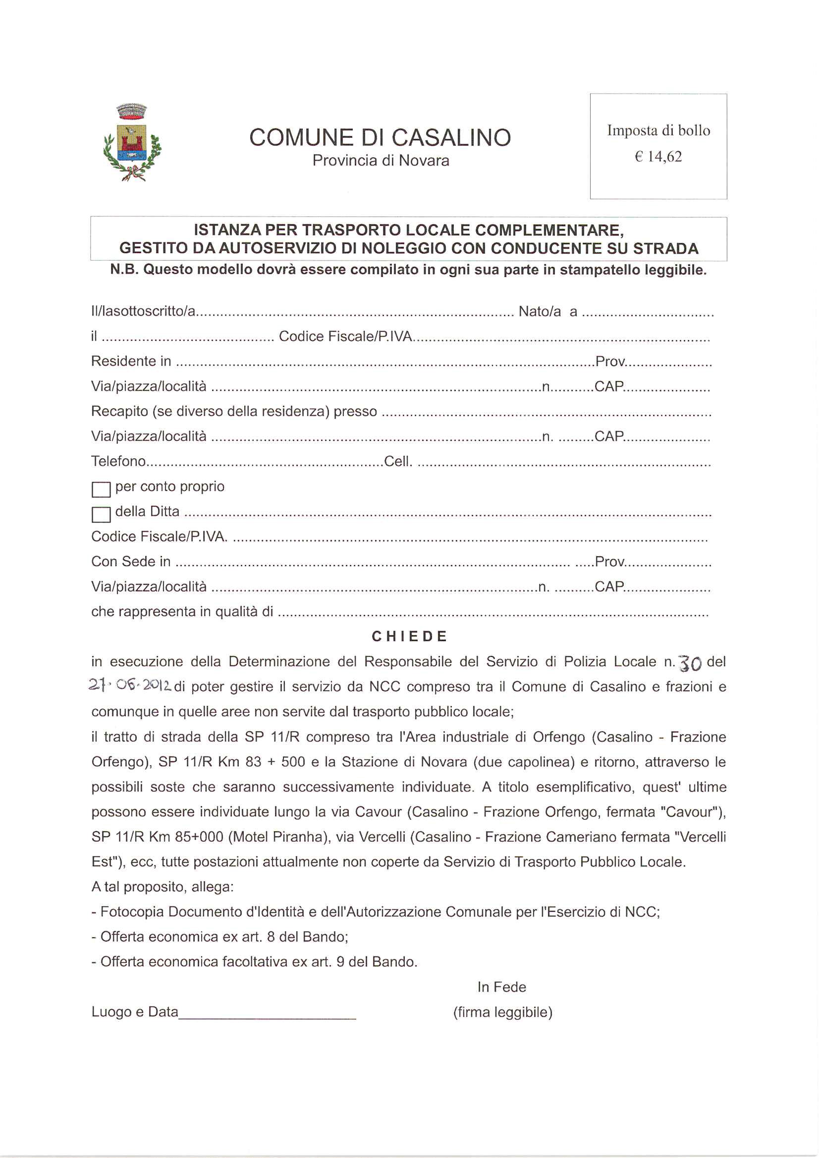 Bando di trasporto locale complmentare e sperimentale gestito da autoservizio di noleggio con conducente su strada
