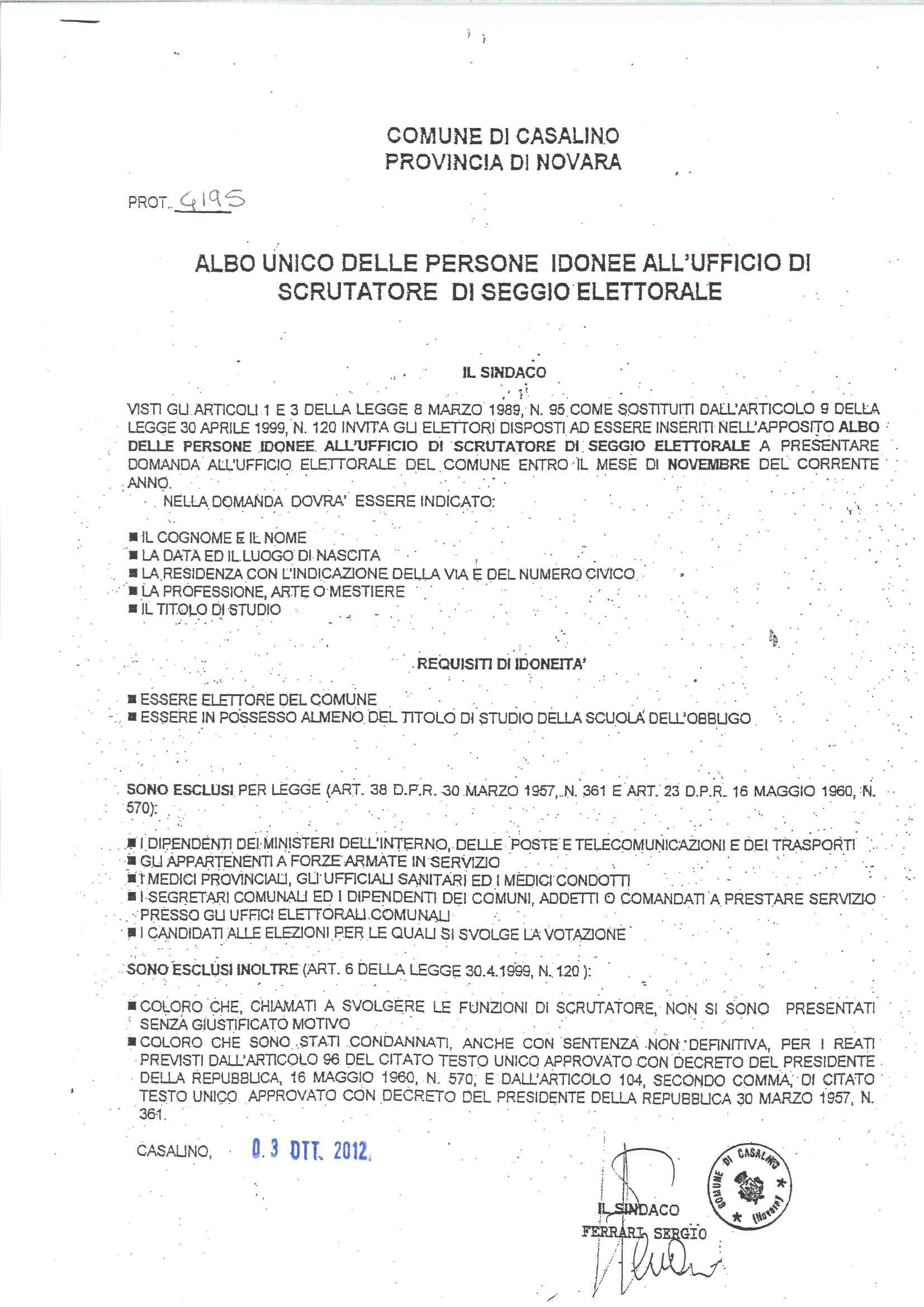aggiornamento annuale albo scrutatori seggio elettorale.