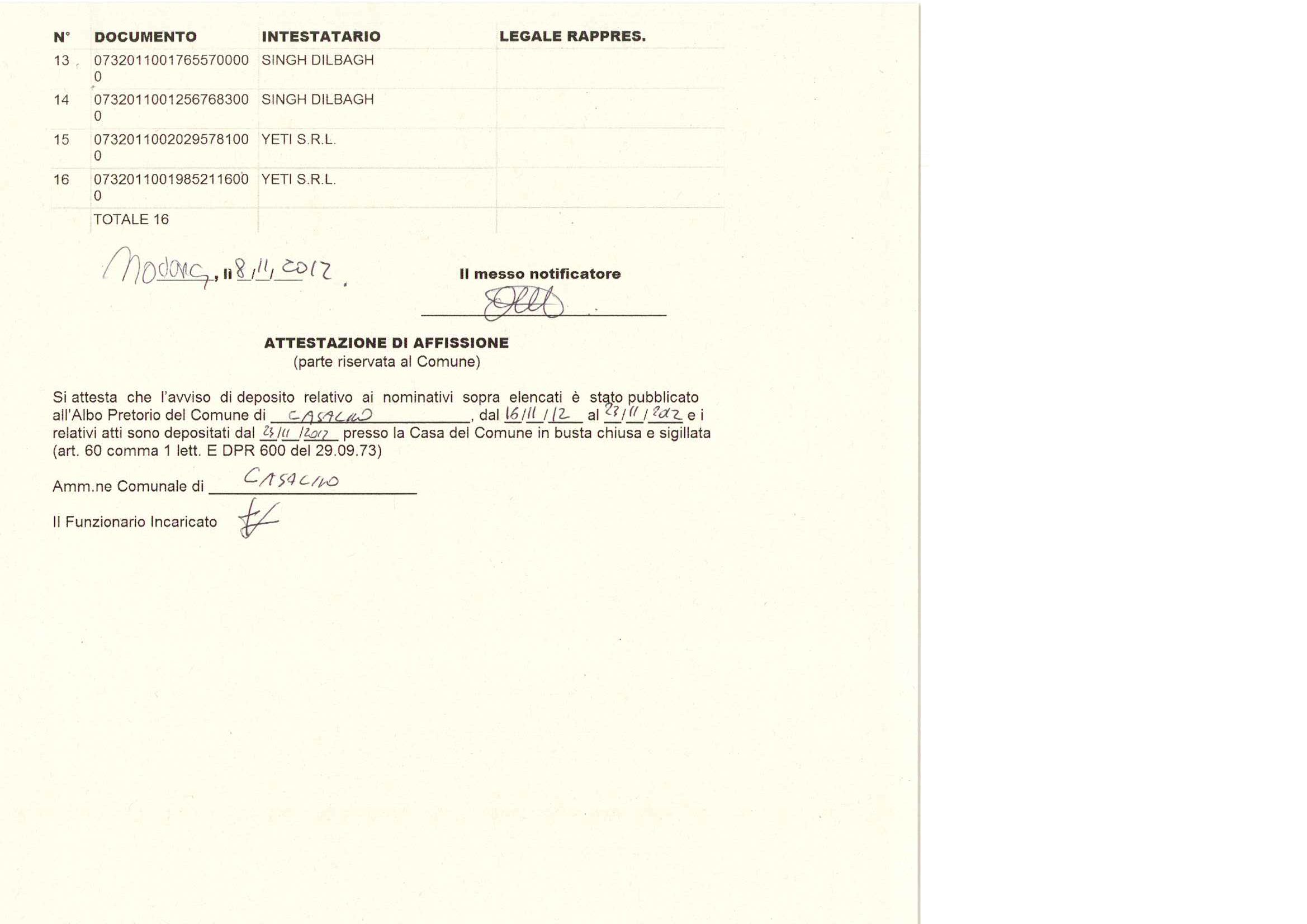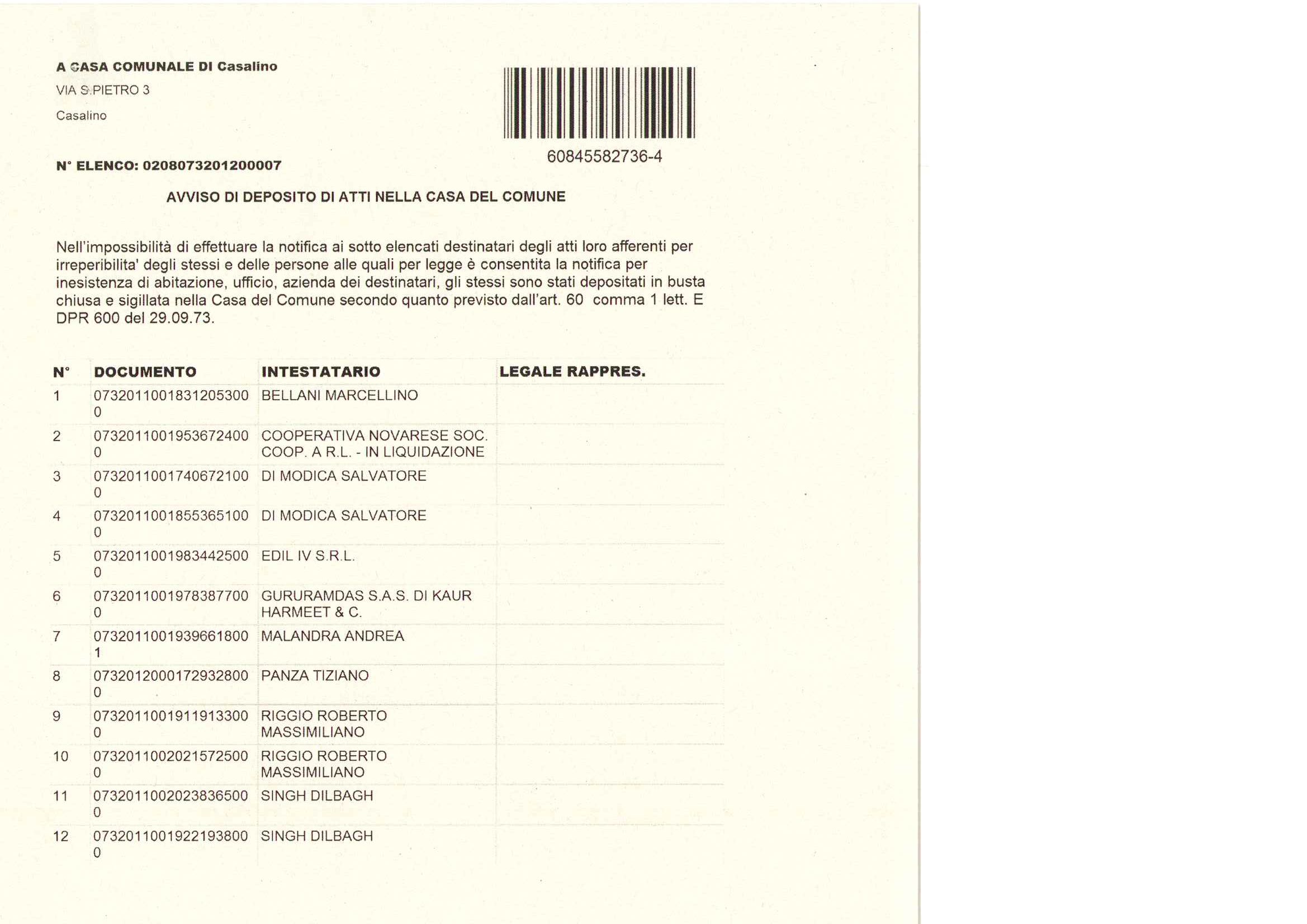 Avviso deposito atti nella casa comunale