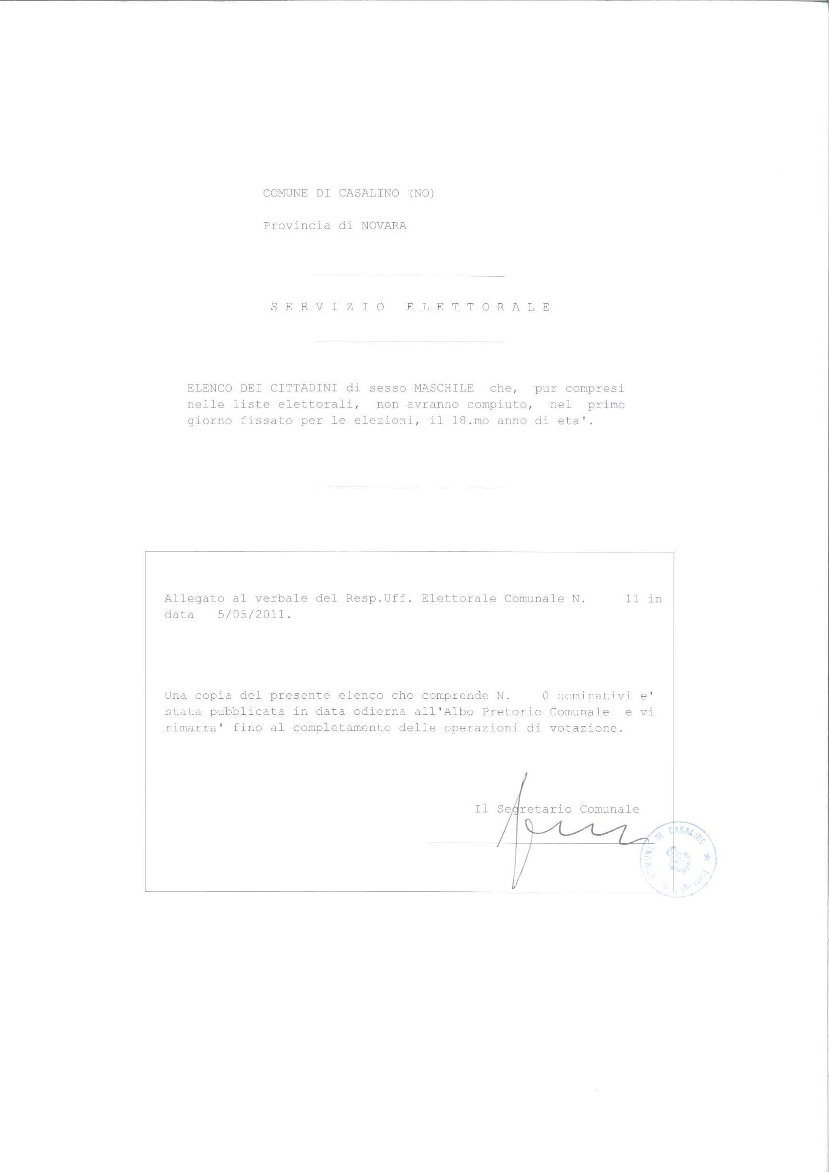 COMPILAZIONE IN TRIPLICE COPIA DEI CITTADINI CHE, PUR ESSENDO COMPRESI NELLE LISTE ELETTORALI, NON AVRANNO COMPIUTO, NEL GIORNO FISSATO PER LE ELEZIONI, IL 18ESIMO ANNO DI ETA'.