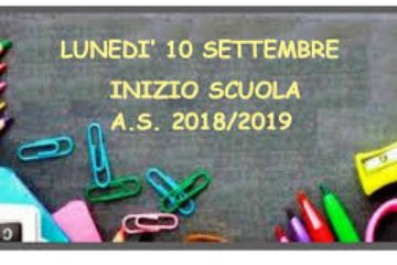 LUNEDI' 10/09/2018 INIZIA IL NUOVO ANNO SCOLASTICO.
