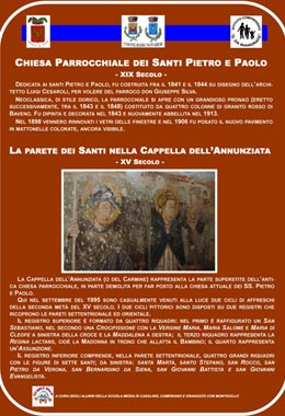 The Annunziata chapel represents the surviving part of the ancient parish church. In 1995 two cycles of frescoes from the second half of the fifteenth century came to light, arranged on two registers: the upper one is made up of panels, depicting St. Sebastian, a Crucifixion, the Madonna on the throne nursing the Child, an Assumption, Sant'Ambrogio and the Passion; the lower register includes the figures of Santa Marta (or Dorotea), Santo Stefano, San Rocco, San Pietro da Verona, San Bernardino da Siena, San Giovanni Battista, San Giovanni Evangelista and the "Credo".