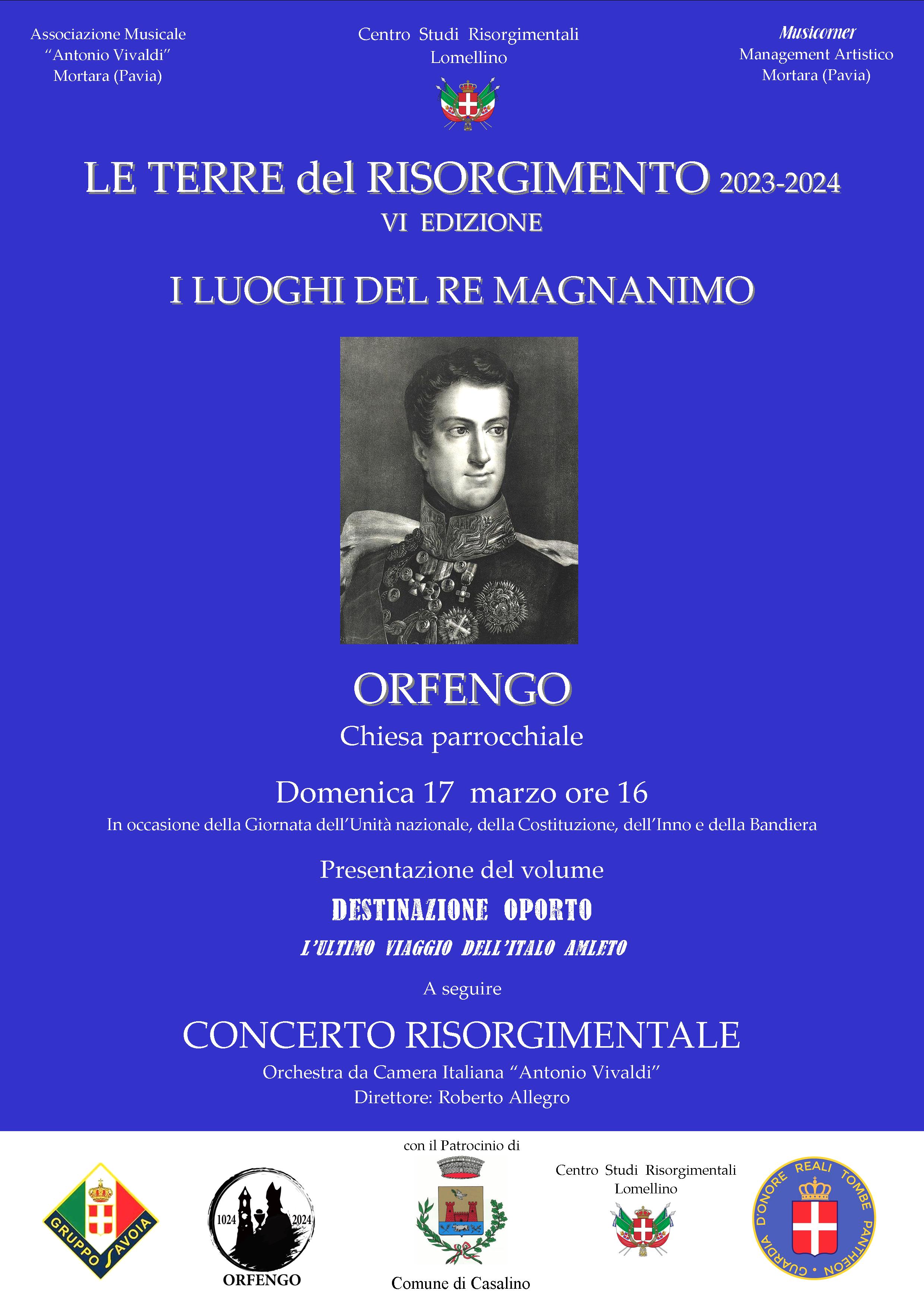 Domenica 17 marzo, ore 16.00, in occasione della Giornata dell'Unità nazionale, della Costituzione, dell'Inno e della Bandiera, presso la Chiesa parrocchiale di Orfengo - fraz. Casalino - sarà presentato il volume Destinazione Oporto, l'ultimo viaggio dell'Italo Amleto.