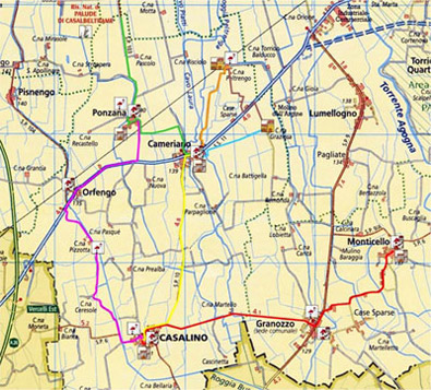 I percorsi si sviluppano per una lunghezza complessiva di più di 30 Km, attraversando territori agricoli dove si coltivano diverse varietà di riso, anche particolari, sia precoci che tardive.